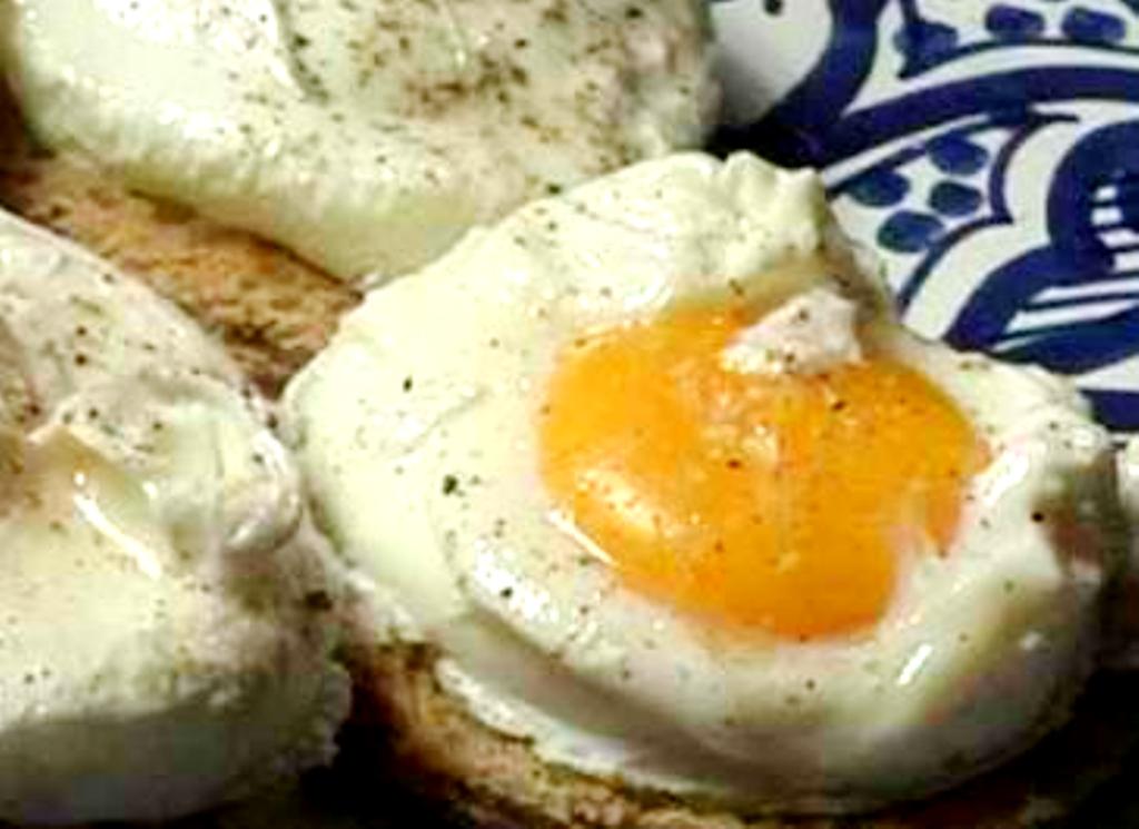 - Prepare eggs following the directions for "Way of Preparing Poached Eggs". Place a mound of onion rings on each plate. Top the onions with an egg and each egg with a heaping tablespoon of tomato sauce. Serve immediately.